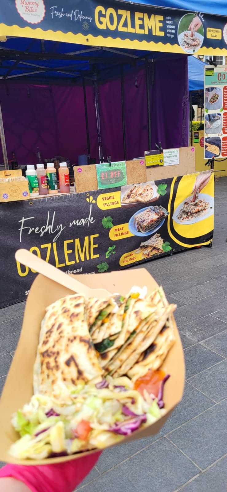 A taste of Levant brought to you by Yummy Bites London, take a bite of their crispy golden Turkish flatbread stuffed with a mouth-watering filling of your choice. Handmade with gozleme a traditional Turkish pastry, there’s a variety of savoury fillings to choose from with feta cheese and spinach to potatoes, mushrooms, spiced beef or lamb. Whether you are looking for a meat treat, vegetarian or vegan, get a gozleme freshly prepared whilst you wait. Make sure to you grab your Yummy Bite.